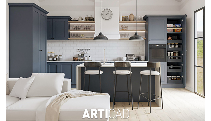 Although the full details of the Tom Howley Remote Design Service are yet to be publicised we would expect Tom Howley to mirror what kbb independents do in that they would take various samples of doors, worktops, tile and the like to showcase the premium materials on offer, but just as the kbb independents have been doing for years, the Tom Howley designer would measure the kitchen and then generate a 3D visual of the customers ideal kitchen and with the latest versions of design software such as ArtiCAD Version 24, a designer can better recreate more accurate reflections, refractions, and shadows, resulting in hyper realistic-looking images that better reflect the actual kitchen area of the customer, more so that if they came into a showroom.